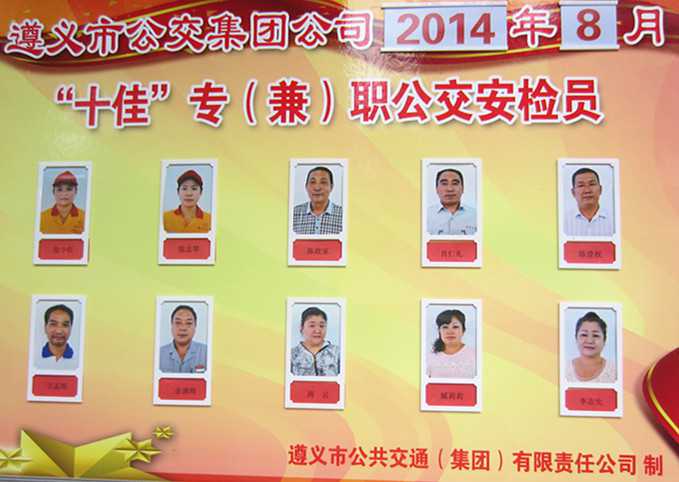 首批“十佳公交专(兼)职安检员”亮相受表彰 ——集团公司召开“2014年8月‘十佳公交专(兼)职安检员’表彰会”